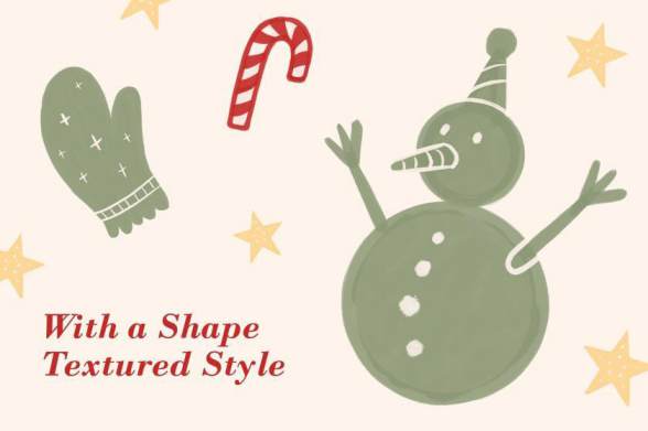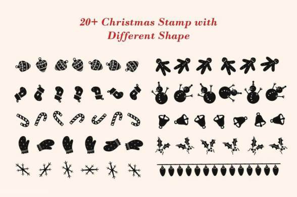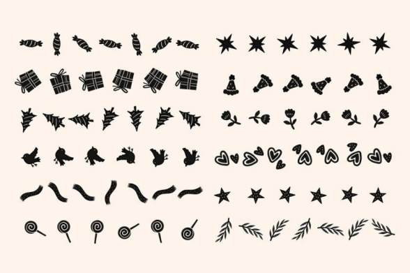 素材中包含了姜饼人、圣诞树、手套、圣诞袜、铃铛、雪人、彩条、雪花等等,笔触流畅,图形可爱,能够满足您多样