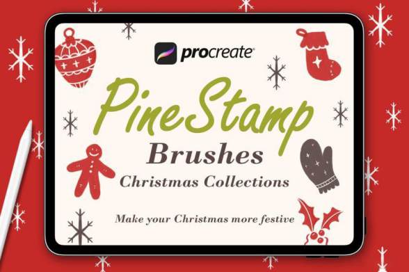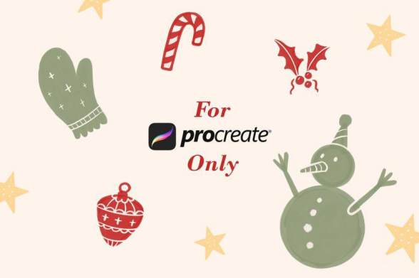 Procreate笔刷-圣诞主题装饰性设计插画笔刷素材资源