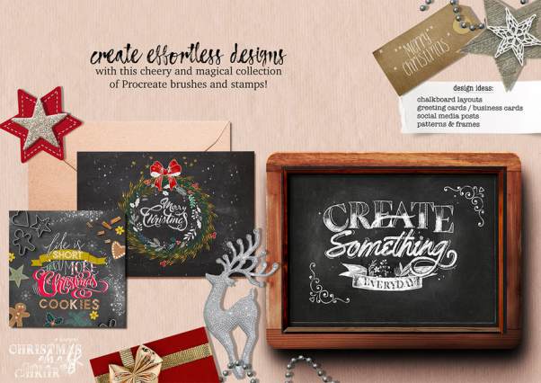 图穷设计网 » Procreate笔刷-圣诞节黑板粉笔背景画图案笔刷素材