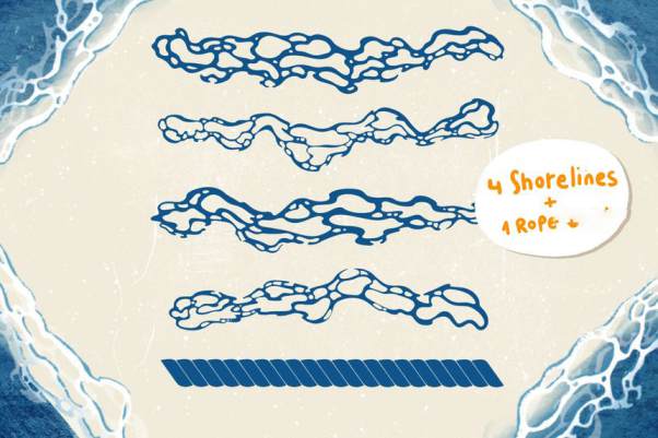 图案笔刷和一个绳子刷。还包括 30 个海洋和海滩主题纹理笔刷,由真正的浮木、沙子、海滩等照片制成。
