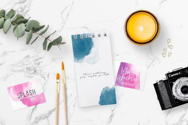 邀请函、文具和打印材料。创建水彩文字、海报、名片、博客按钮和其他项目!