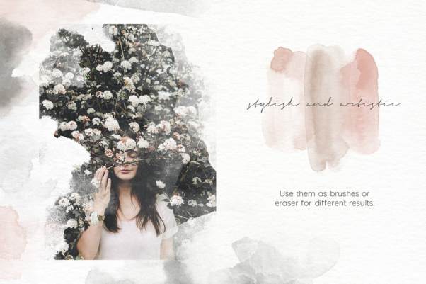 的各种图形。使用这些套装笔刷、来做品牌、水彩设计、产品、网页设计、网上商店、插图、标志、图形、