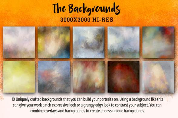 其他绘画,它们是出色的数字插图工具。素材不仅包含了15个超棒的笔刷,还包含了10个背景文件,10个纹理