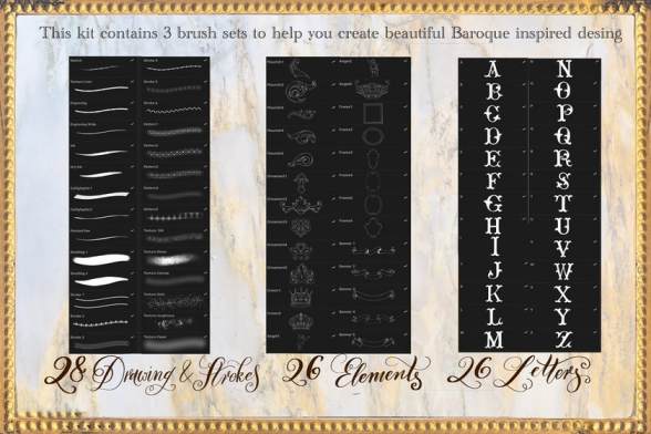 复古巴洛克风格Procreate艺术文字笔刷素材,包含了所有巴洛克风格的特征,如节奏和音阶,光与影,材质和