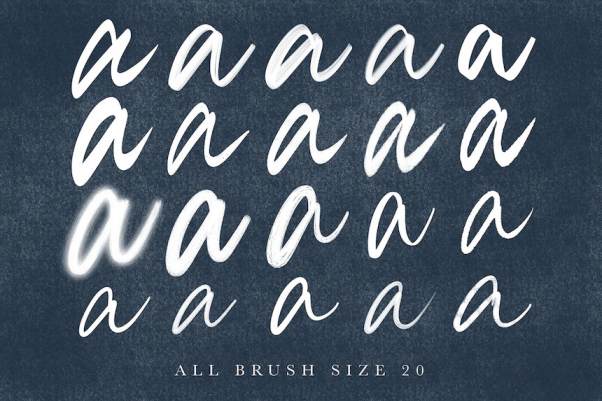 5支签名笔刷。在书法笔刷中,笔刷稍厚一些,以使您更容易创建漂亮的字母。而签名笔刷则更纤细,并增加