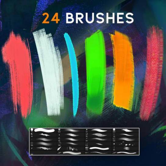 插画师Rossdraws的高级ps和Procreate笔刷套装,总共有24个笔刷,包含有:基本的绘画笔刷、墨水笔刷、