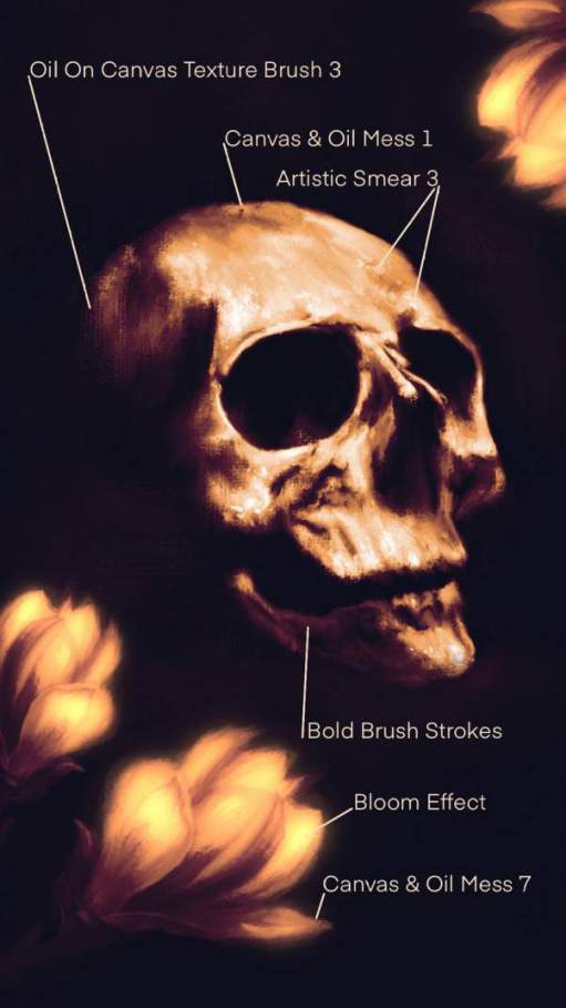 特别的多用途Procreate油画笔刷素材,素材总共有57个笔刷,包含了:50个油画笔刷;7种特殊的涂抹/混合刷
