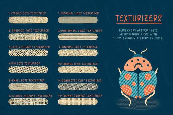 半色调纹理procreate笔刷素材,可以帮助平滑的添加纹理和阴影,并为您的作品增添一些脏兮兮的效果。