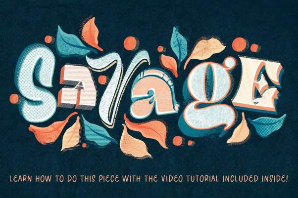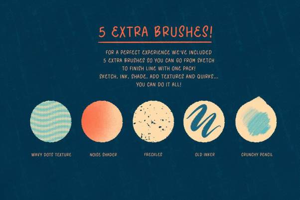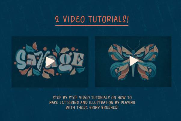 5个常用纹理笔刷。素材还提供视频教程,您将学习如何制作古怪的字母、花卉以及如何使用半色调画笔