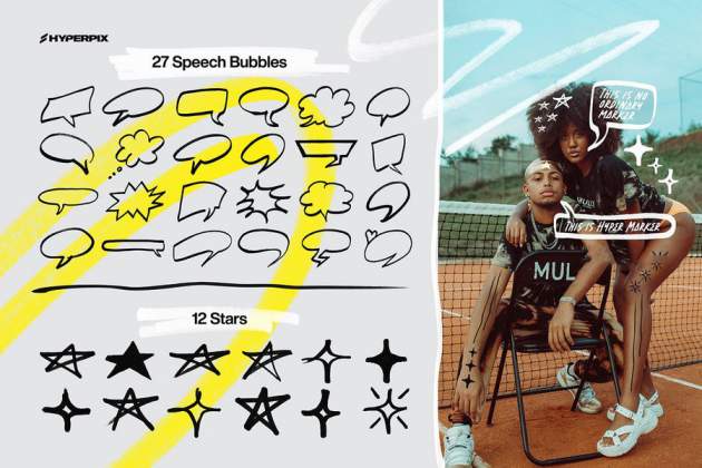 1000款手绘涂鸦手写标记PNG图形元素集合包,总共有超过1000个标记图形元素,包含有: