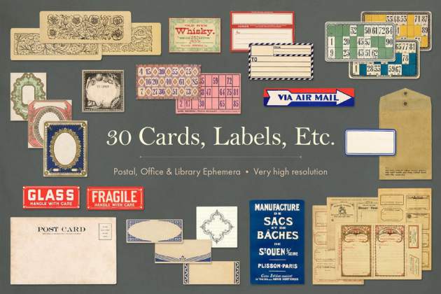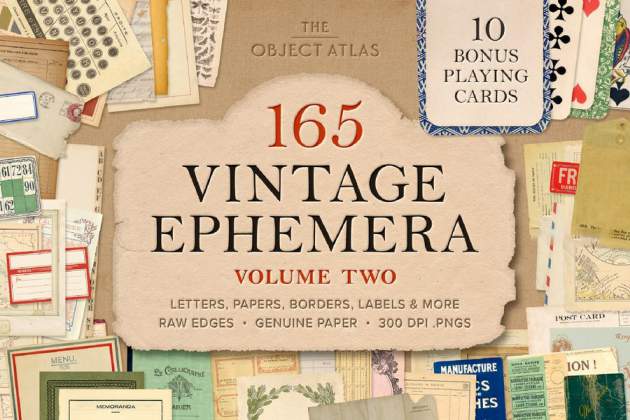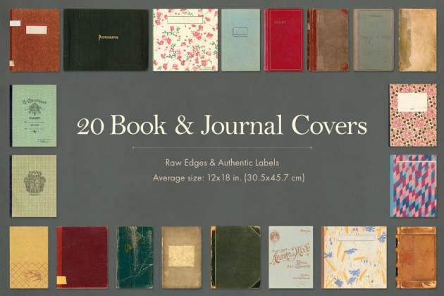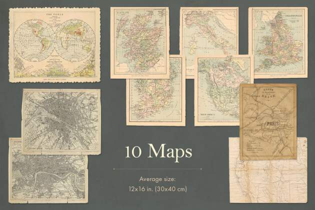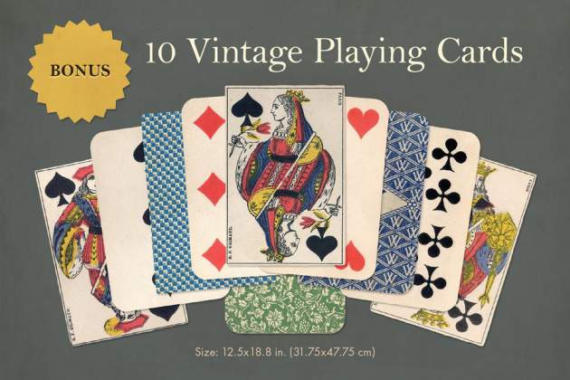 20 本书和期刊封面,10张地图,10 张复古扑克牌。