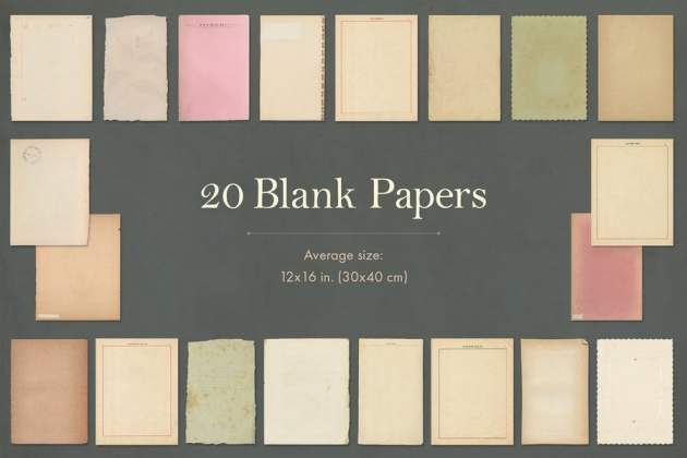 165款复古风格纹理纸张及边框素材合集,总共有 165 张真实复古纸张、边框。包含有:20 张空白书页,