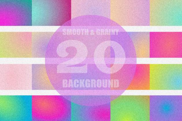 潮流渐变色噪点颗粒模糊纹理背景图片设计素材,具有清新亮丽的渐变色彩,包含了20张无噪点的渐变色背景图,