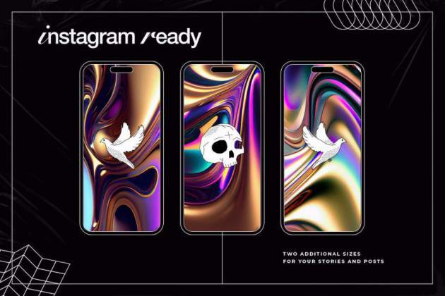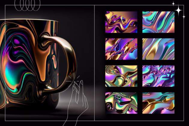 图穷设计网 » 背景素材-彩虹色渐变流动液态金属效果背景图片素材