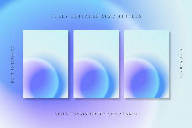 幻彩渐变颗粒感效果矢量背景纹理素材。包括 12 个EPS 格式、 AI 格式和JPG 格式的文件,