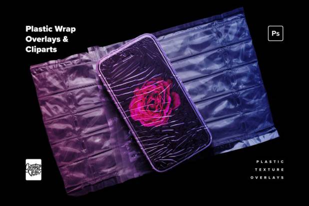素材为psd格式,尺寸为6000x4000px, 300 dpi。文件内的透明塑料叠加纹理为分层格式,总共有20种塑料叠加图片。